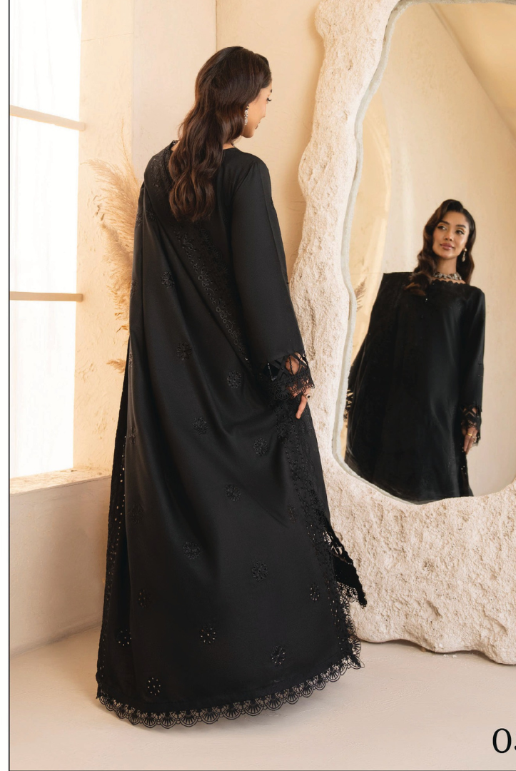 3 Piece Embroidered Wool Stitched Outfit Jugnu by Humdum Winter Collection comes with: