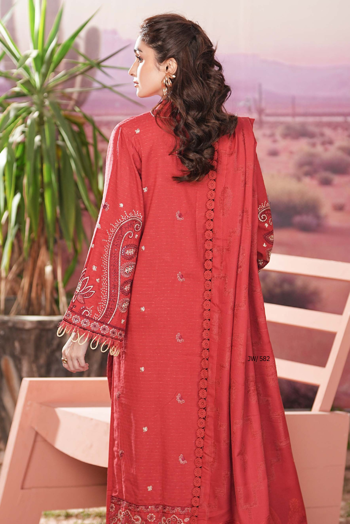 3 Piece Stitched Embroidered Dhanak Suit with Velvet Jacquard Shawl | Vihana by Johra JW/ 582