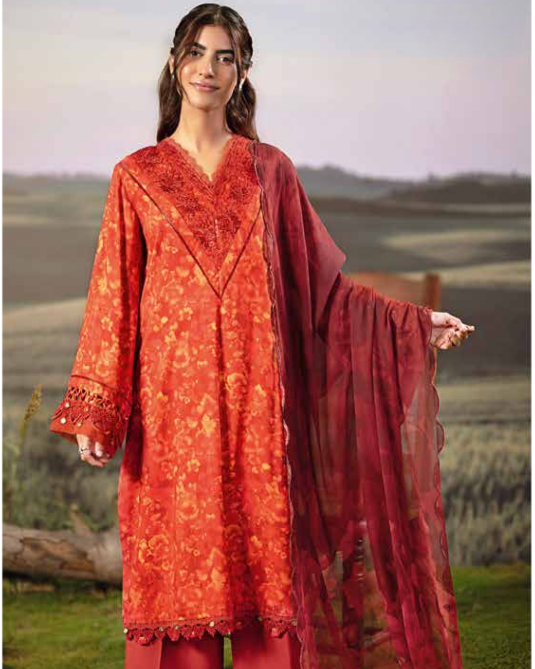 3 Piece Stitched Embroidered Linen Casual - Pre/Fall 25 Winter M.Basics by MARIA.B comes with: