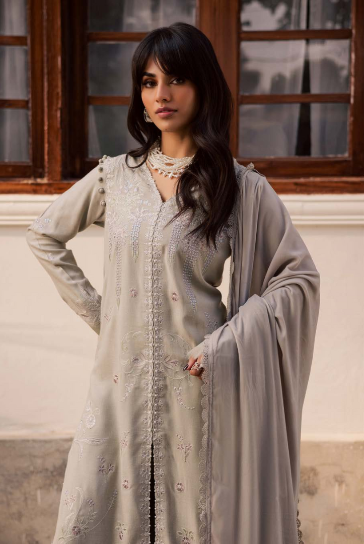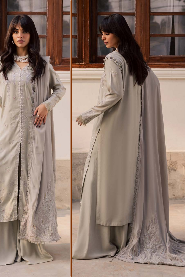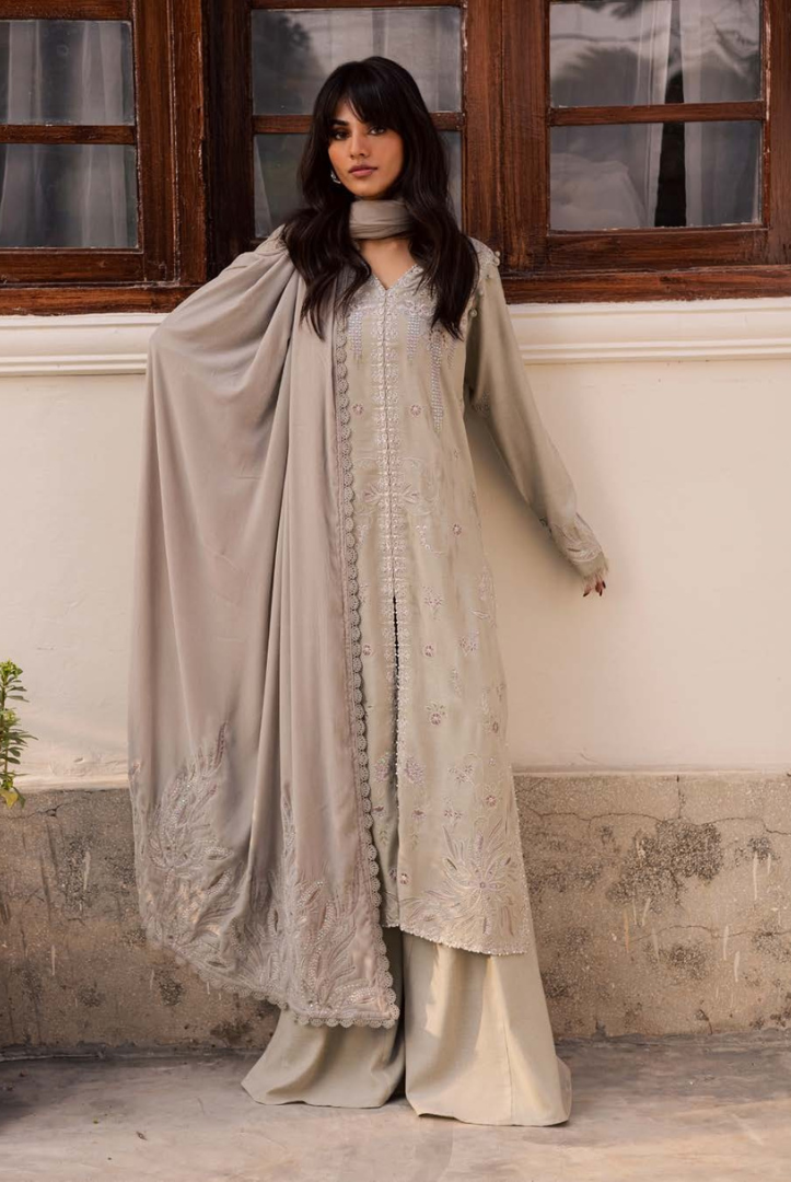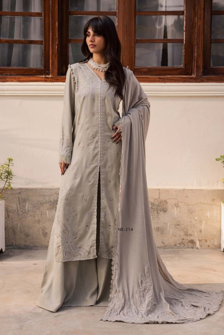 3 Piece Stitched Embroidered Exclusive Luxury Leather Peach By Nureh Winter Collection comes with: