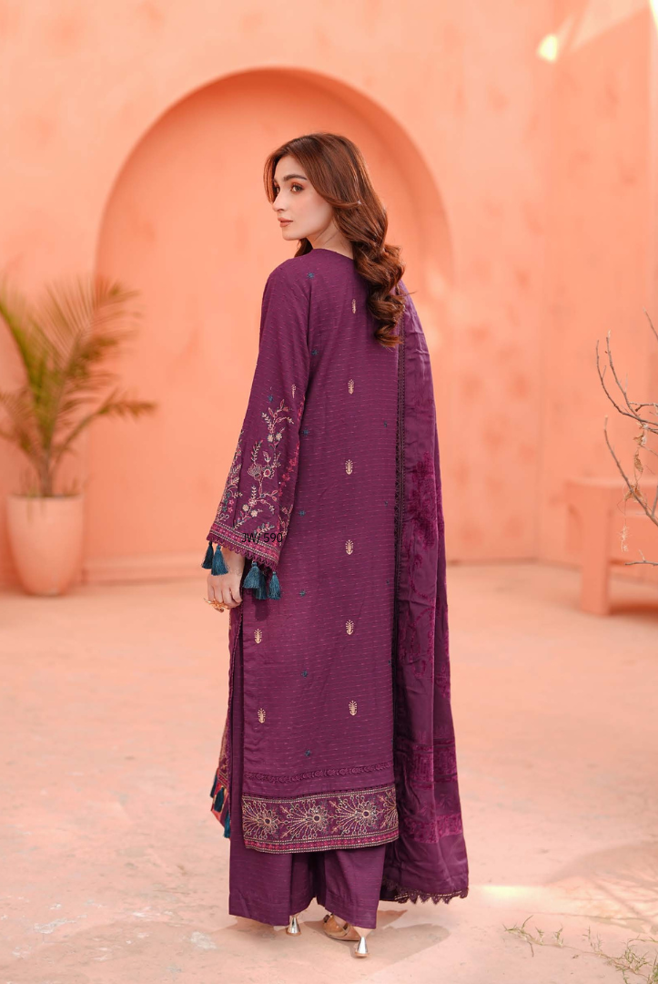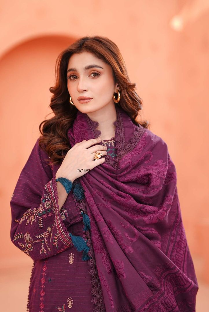 3 Piece Stitched Embroidered Jacquard Velvet Shawl – Hoorish by Johra JW/ 590