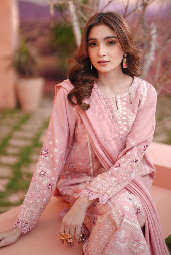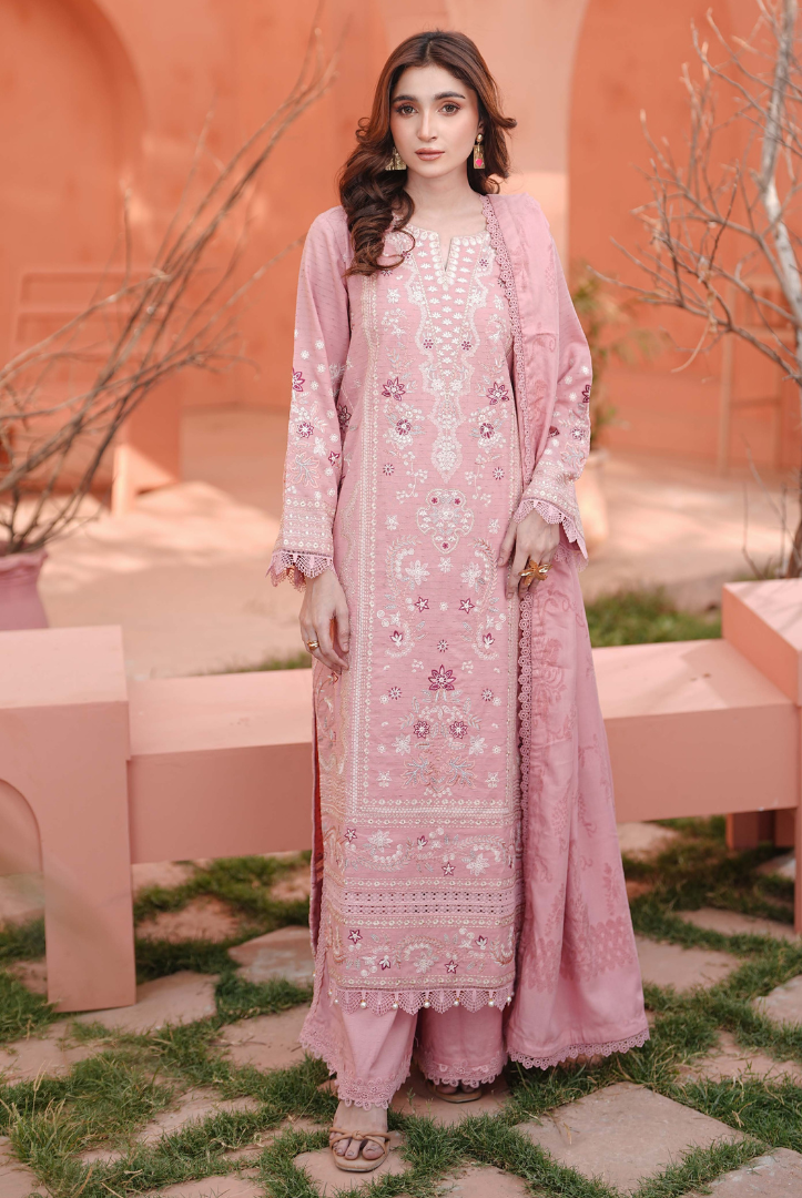- Upgrade your winter wardrobe with this premium luxury 3-piece stitched suit from Hoorish by Johra. Designed with elegant embroidery on high quality Dhanak fabric and paired with an exclusive Jacquard velvet shawl, this outfit offers warmth, comfort, and timeless style perfect for the winter season.