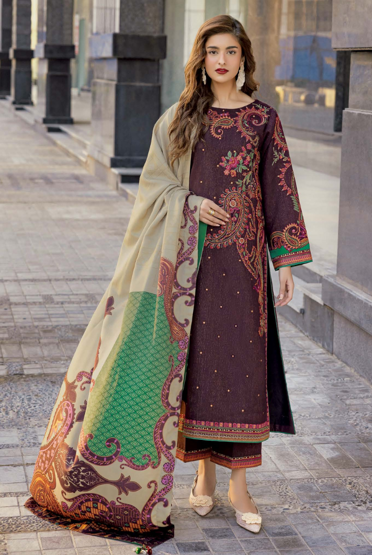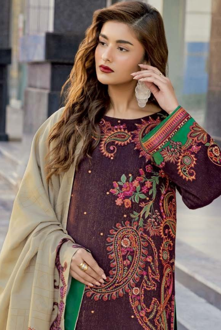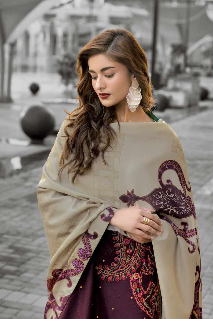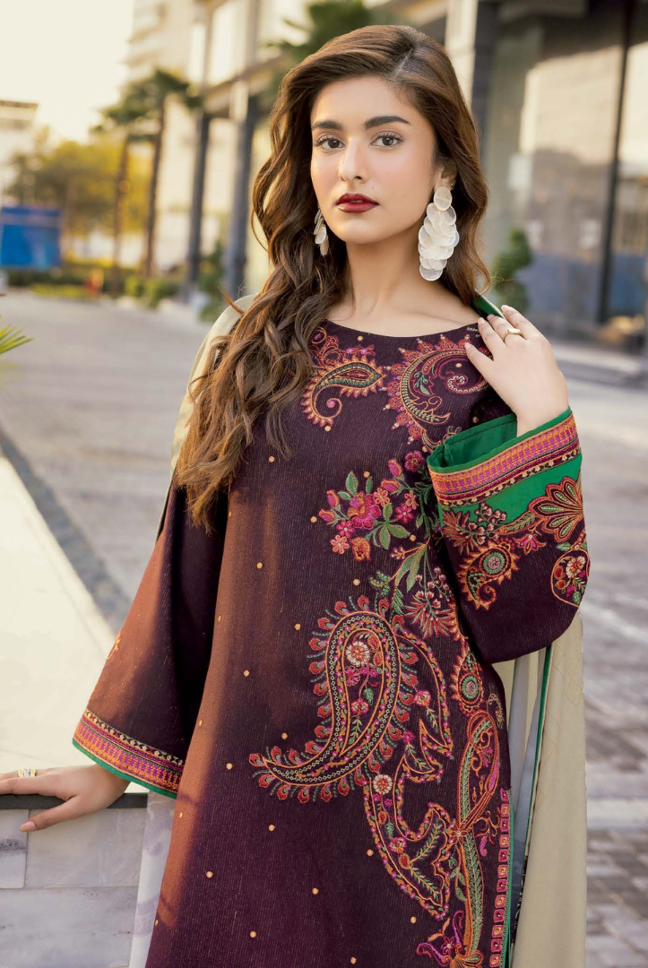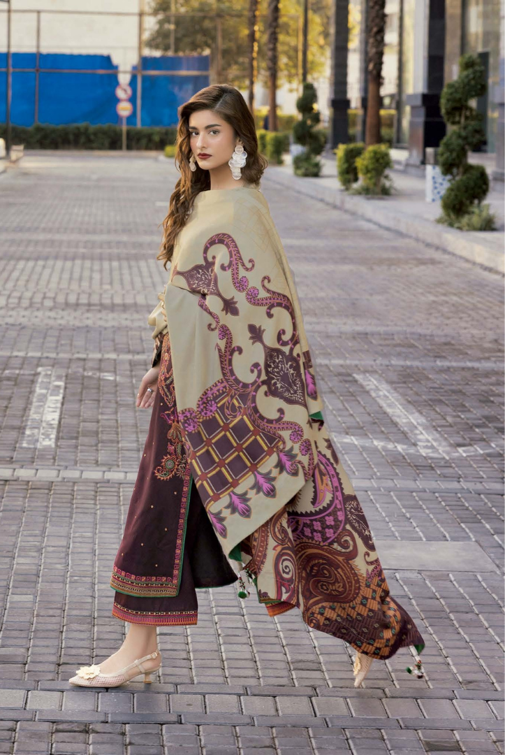3 Piece Stitched Embroidered Peach Leather Poshima by C Charizma Volume IV | Winter Collection comes with: