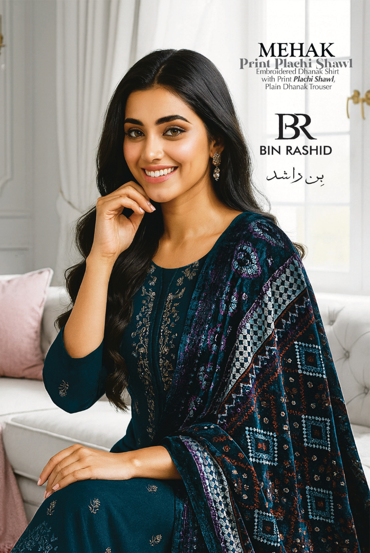 3 Piece Stitched Embroidered Print Plachi Shawl MEHAK BY BIN RASHID (BR) | Winter Collection comes with: