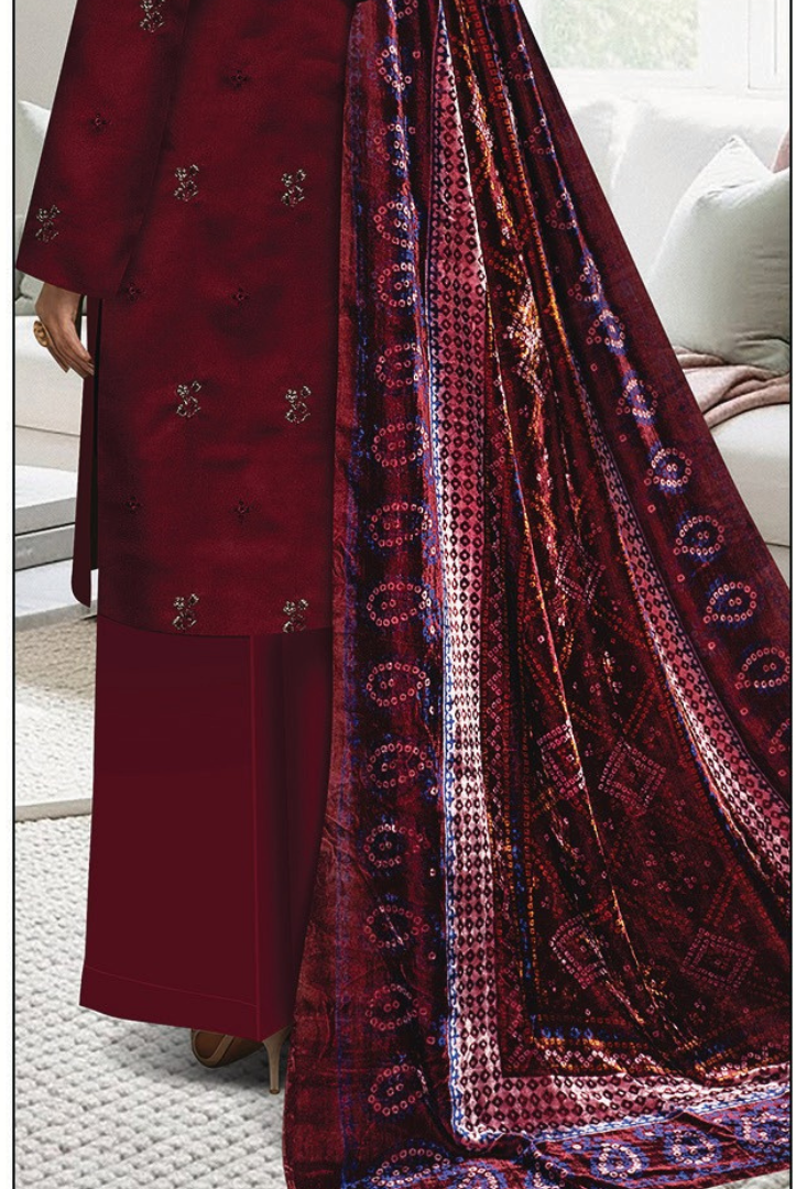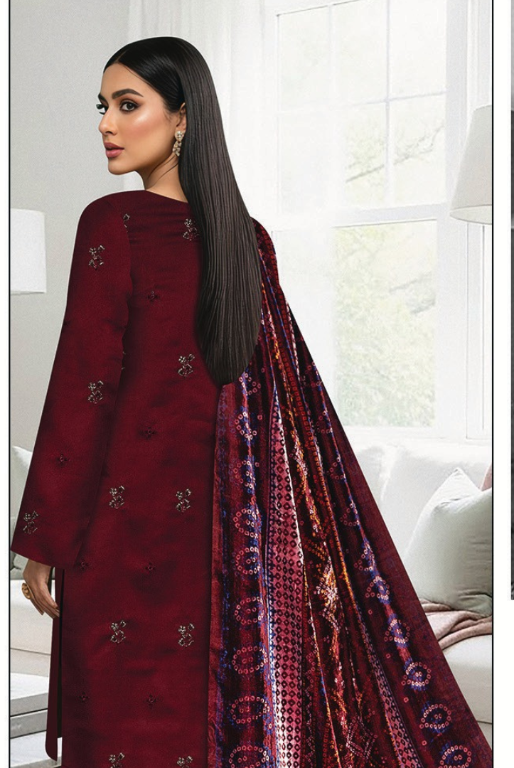 3 Piece Stitched Embroidered Print Plachi Shawl MEHAK BY BIN RASHID (BR) | Winter Collection comes with: