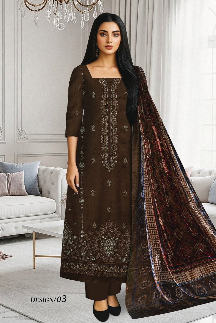 3 Piece Stitched Embroidered Print Plachi Shawl MEHAK BY BIN RASHID (BR) DESIGN/03