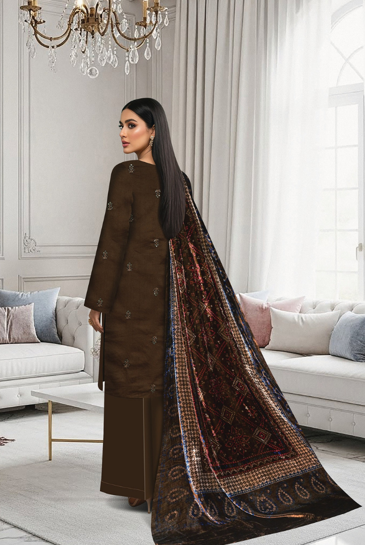 3 Piece Stitched Embroidered Print Plachi Shawl MEHAK BY BIN RASHID (BR) | Winter Collection comes with: