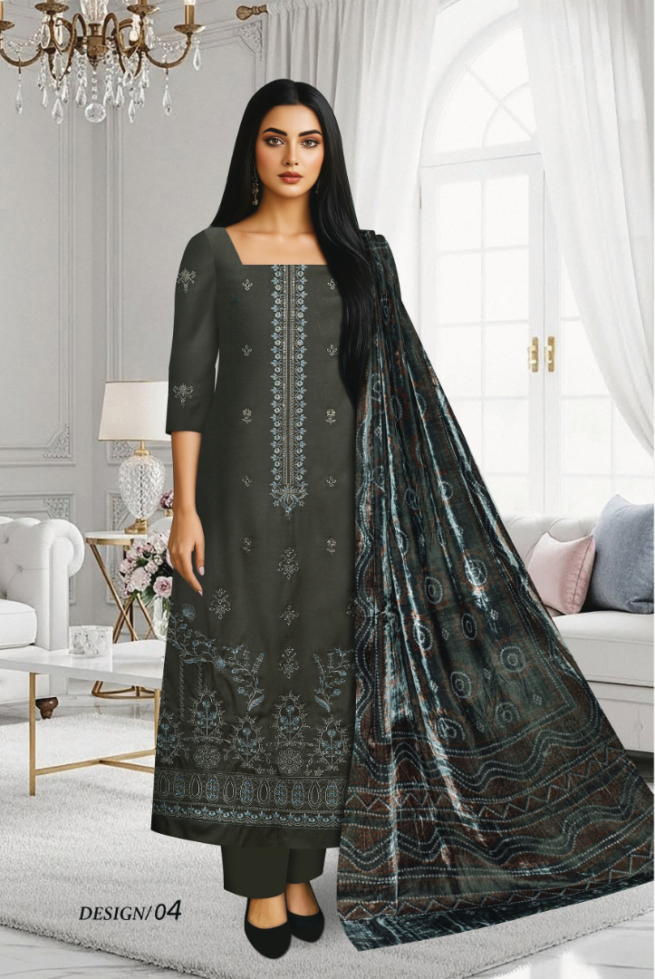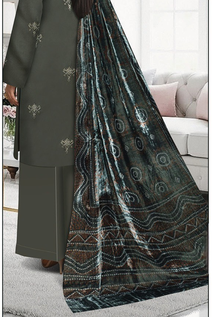 3 Piece Stitched Embroidered Print Plachi Shawl MEHAK BY BIN RASHID (BR) | Winter Collection comes with: