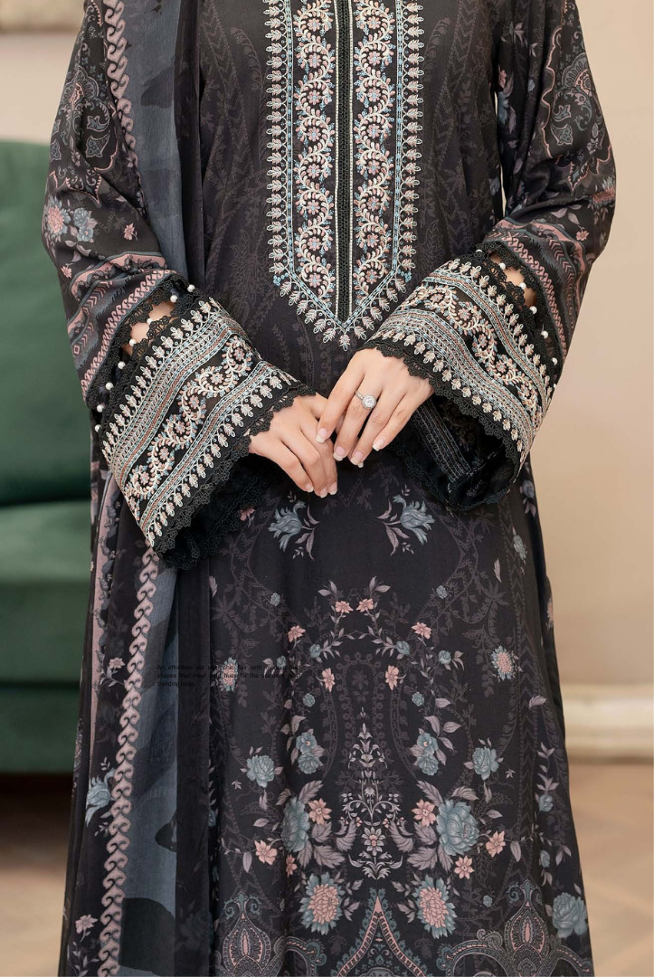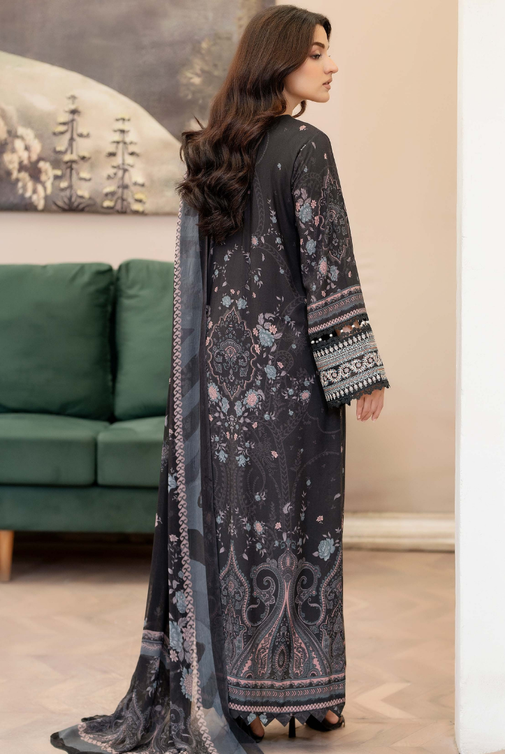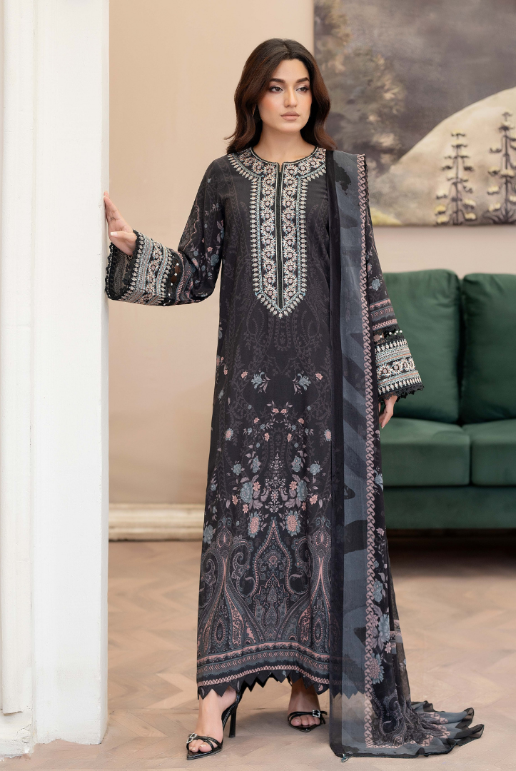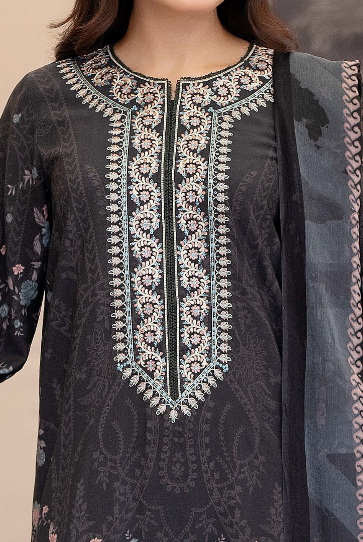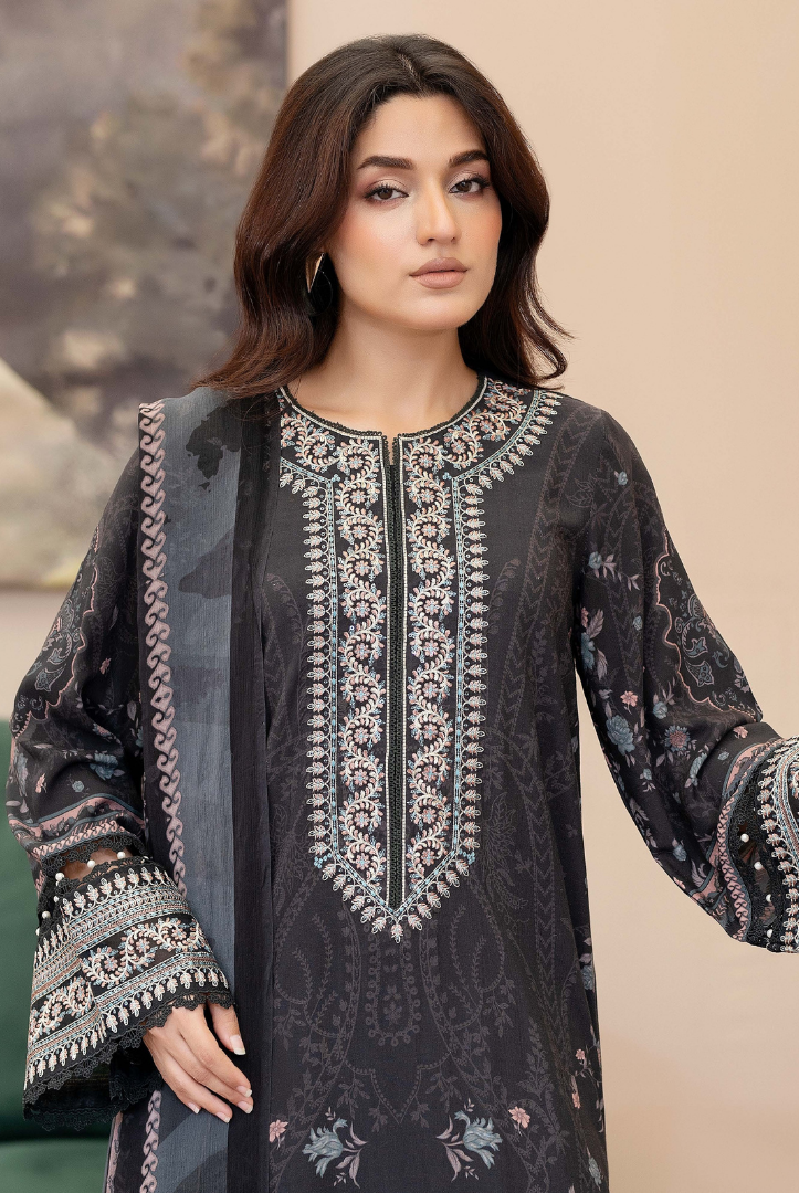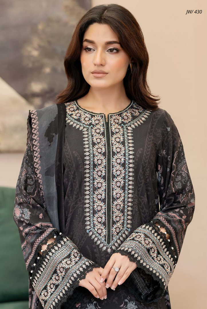 3 Piece Stitched Embroidered Printed Staple Slub Suit SHIRSA by JOHRA Collection comes with: