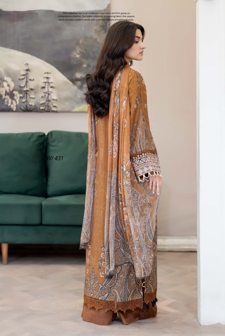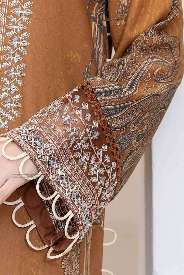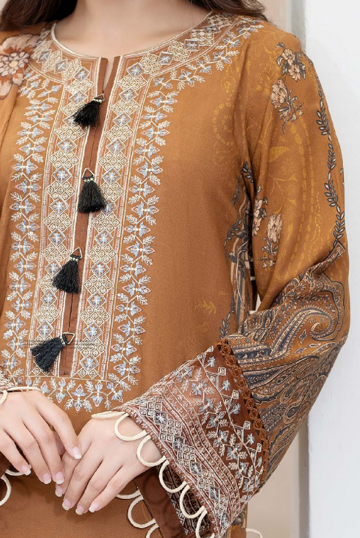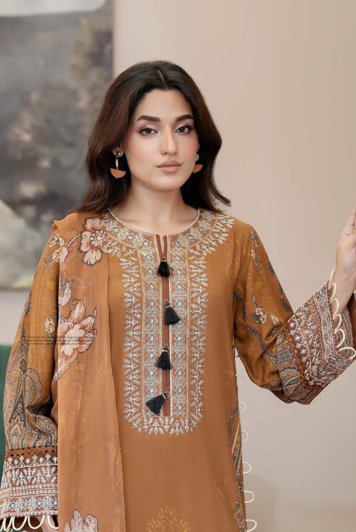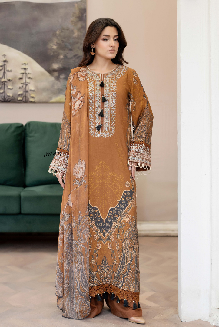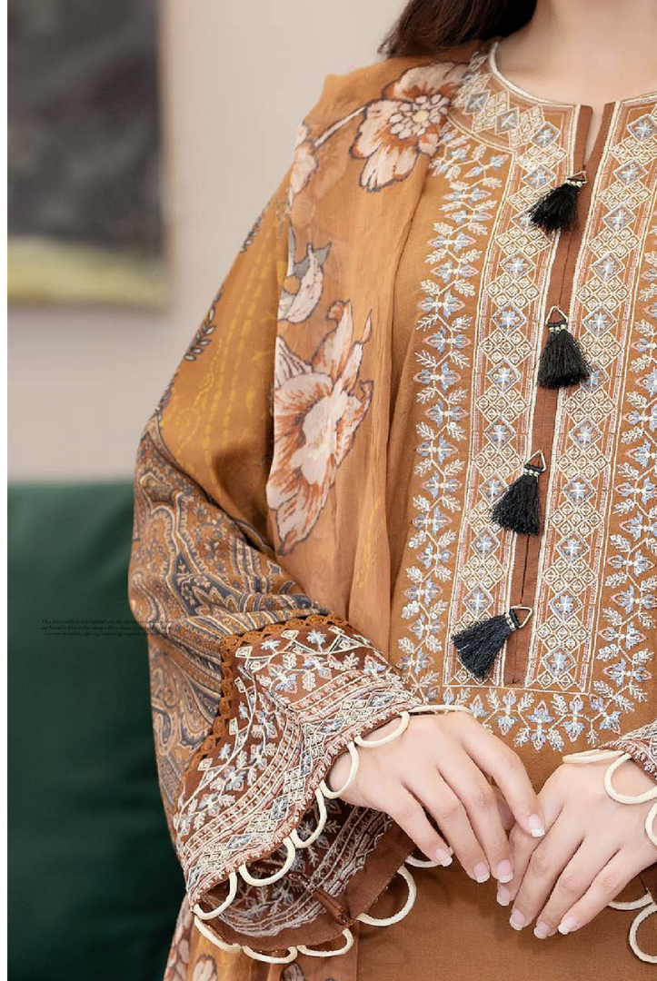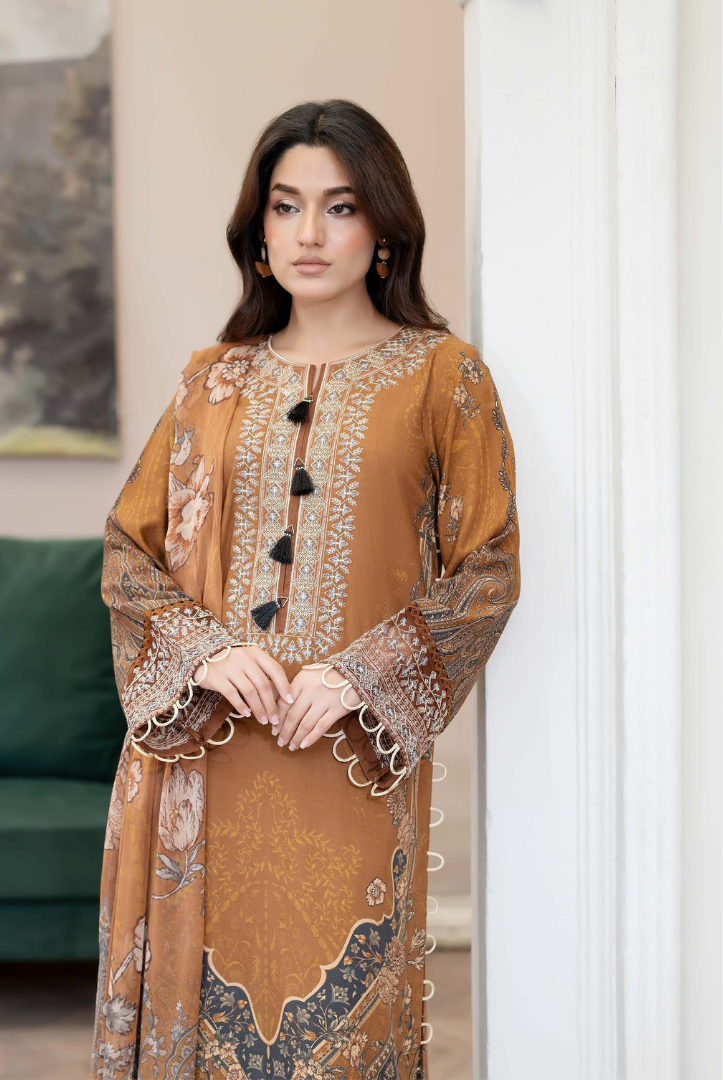 3 Piece Stitched Embroidered Printed Staple Slub Suit SHIRSA by JOHRA Collection comes with: