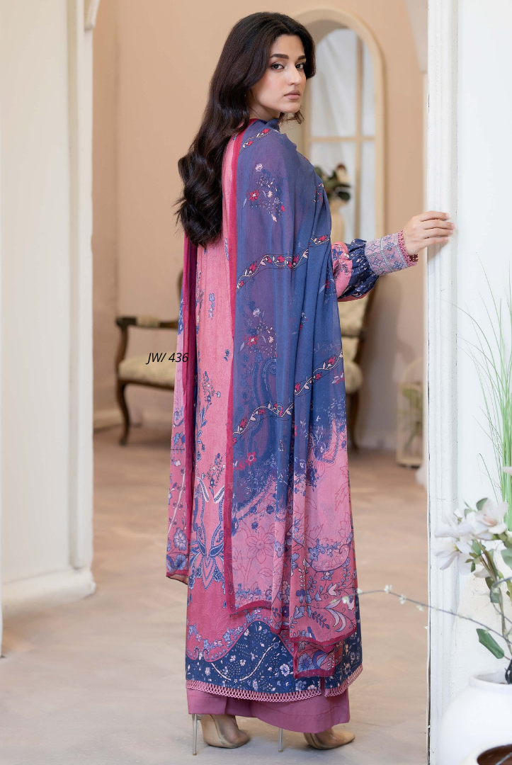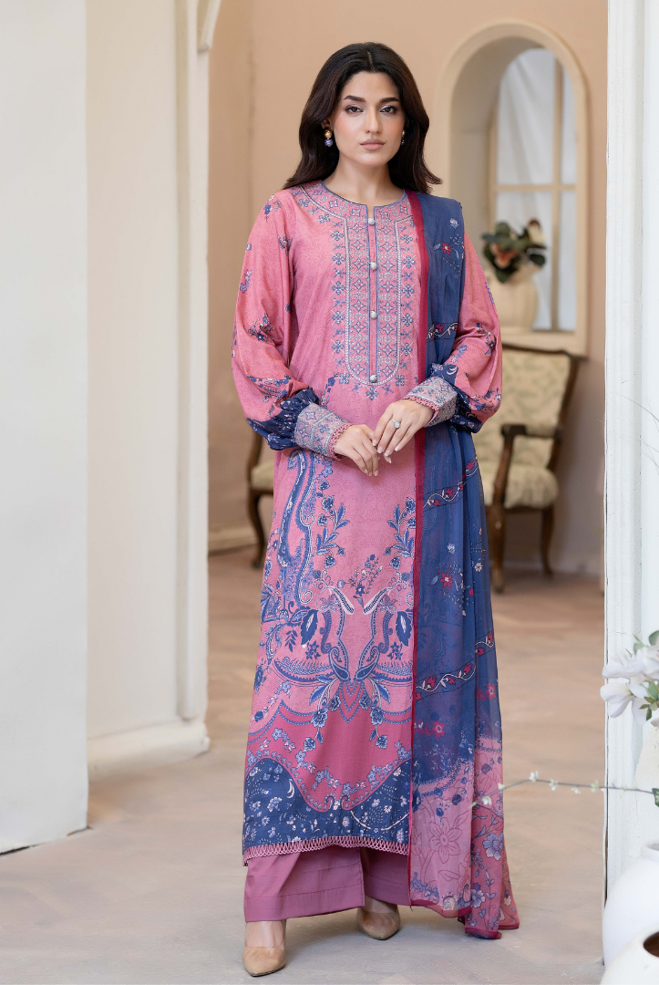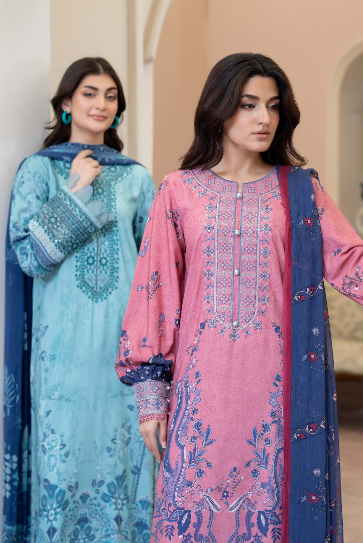 3 Piece Stitched Embroidered Printed Staple Slub Suit SHIRSA by JOHRA Collection comes with: