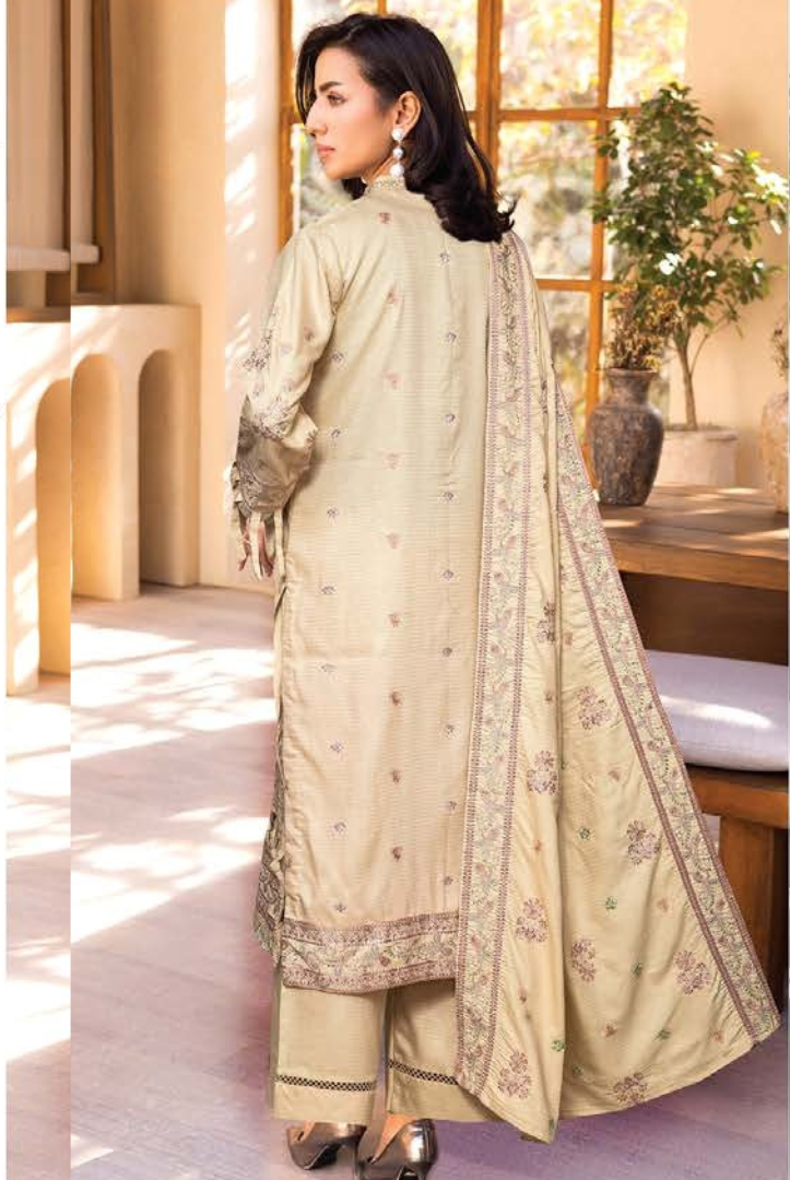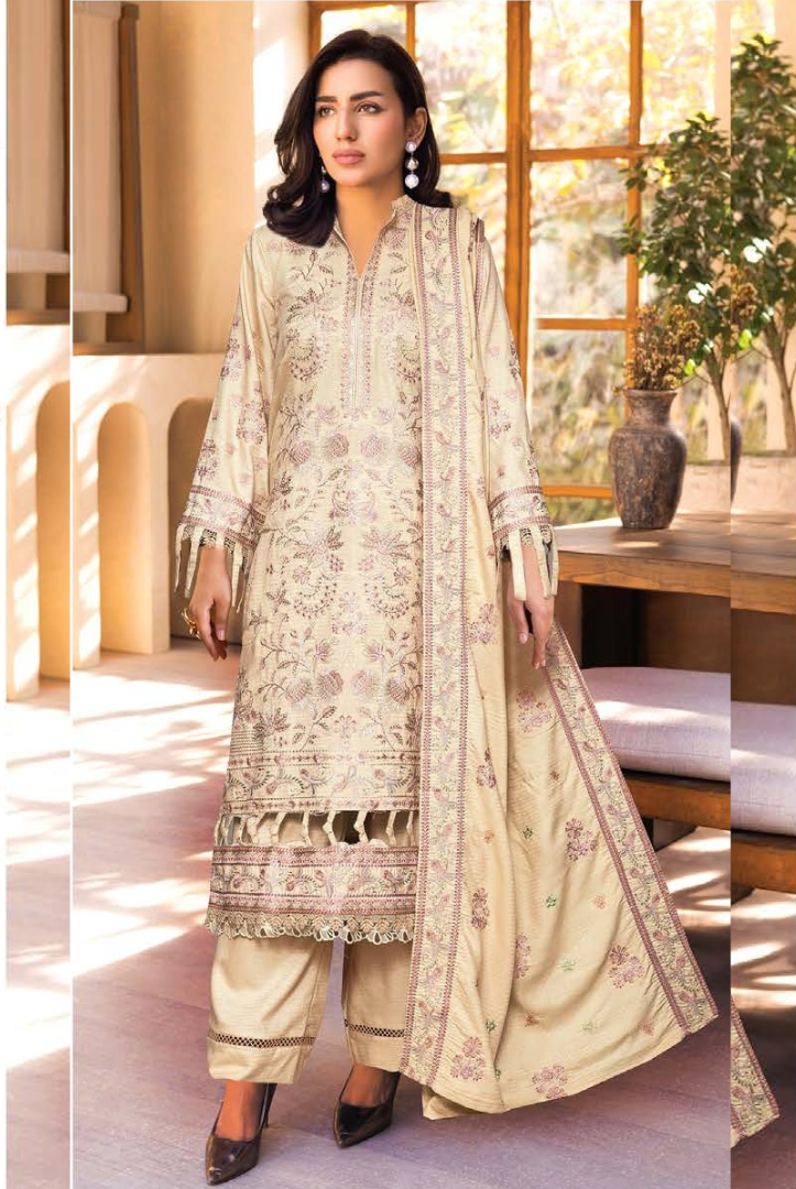 The JOHRA AURA Embroidered Winter Collection is crafted for elegant winter wear, blending warmth with timeless sophistication. This stitched ensemble features a beautifully embroidered winter shirt, paired with a luxury embroidered shawl and a premium dyed trouser. Ideal for festive, formal, and traditional occasions, this outfit delivers refined style with seasonal comfort.
