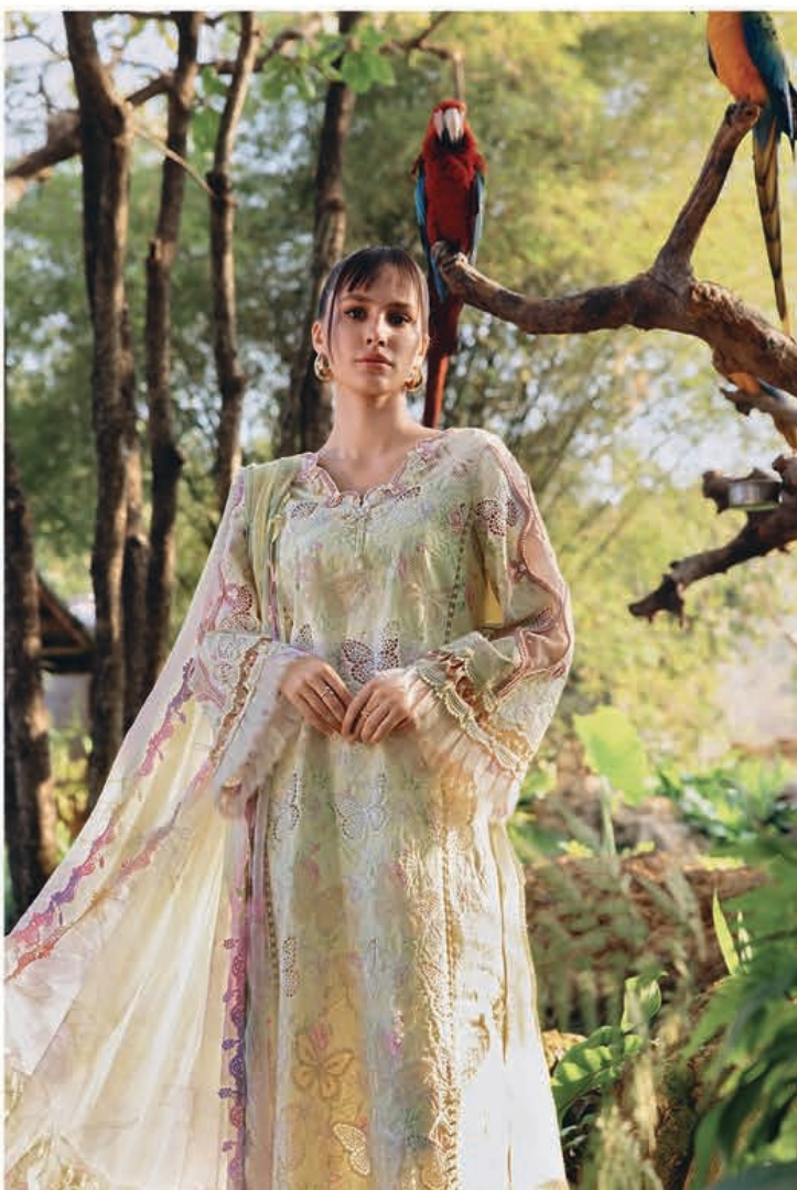 1 Stitched Printed Lawn Shirt with Embroidered Patti Details