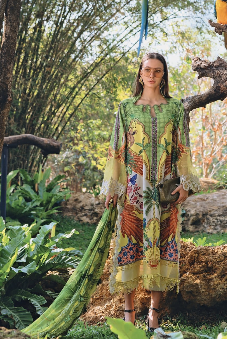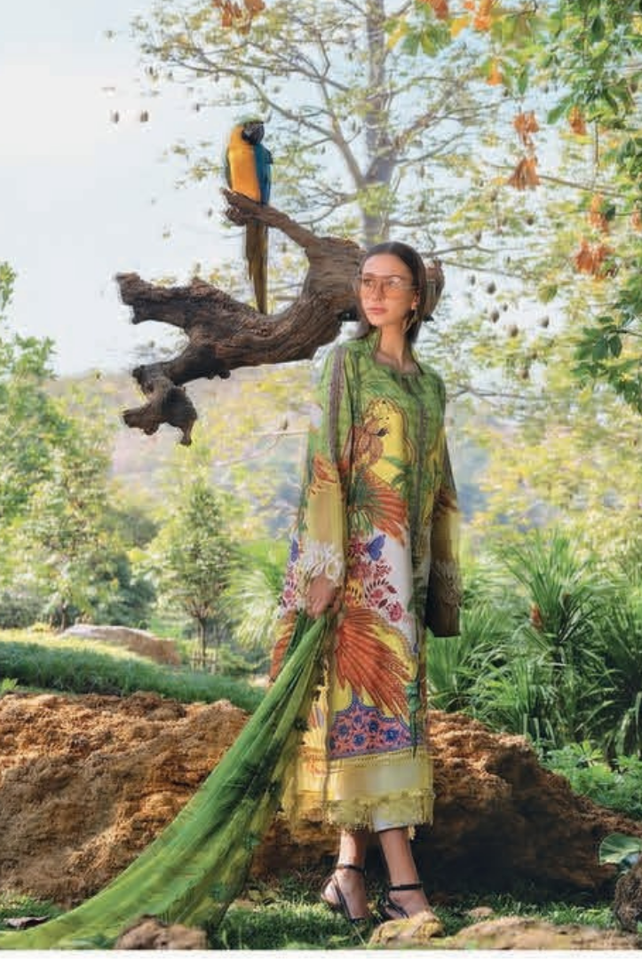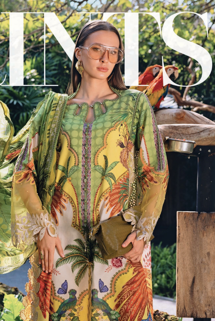 1 Stitched Printed Lawn Shirt with Embroidered Patti Details