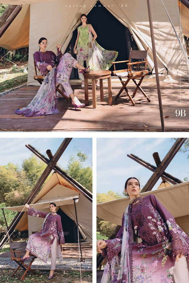 3 Piece Stitched Lawn Suit by Maria B. MPrints Spring/Summer ’26 Collection comes with: