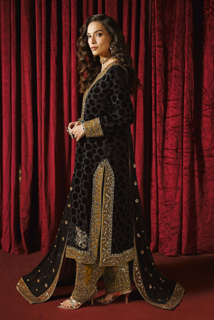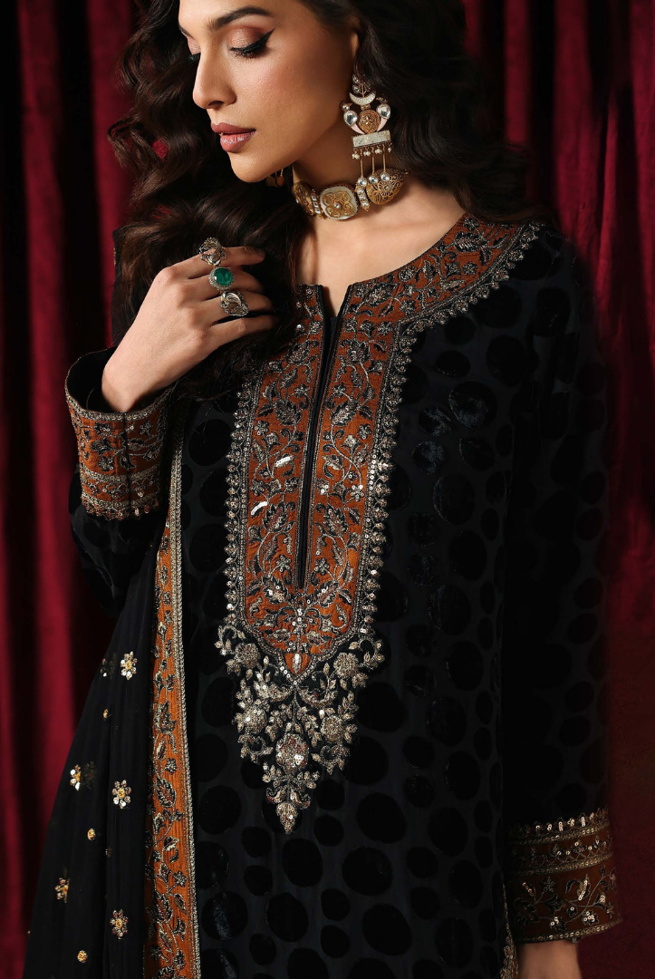 • Shirt: Premium dyed Plachi Velvet, fully stitched with elegant embroidery