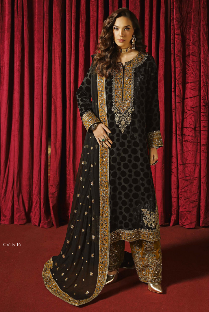 3 Piece Stitched Premium Embroidered Plachi Velvet Suit Signora by Charizma Volume II CVT5-14