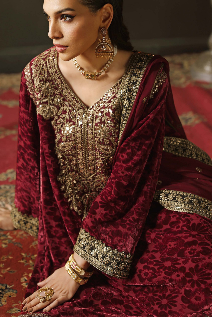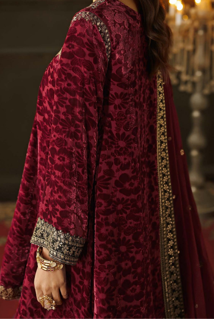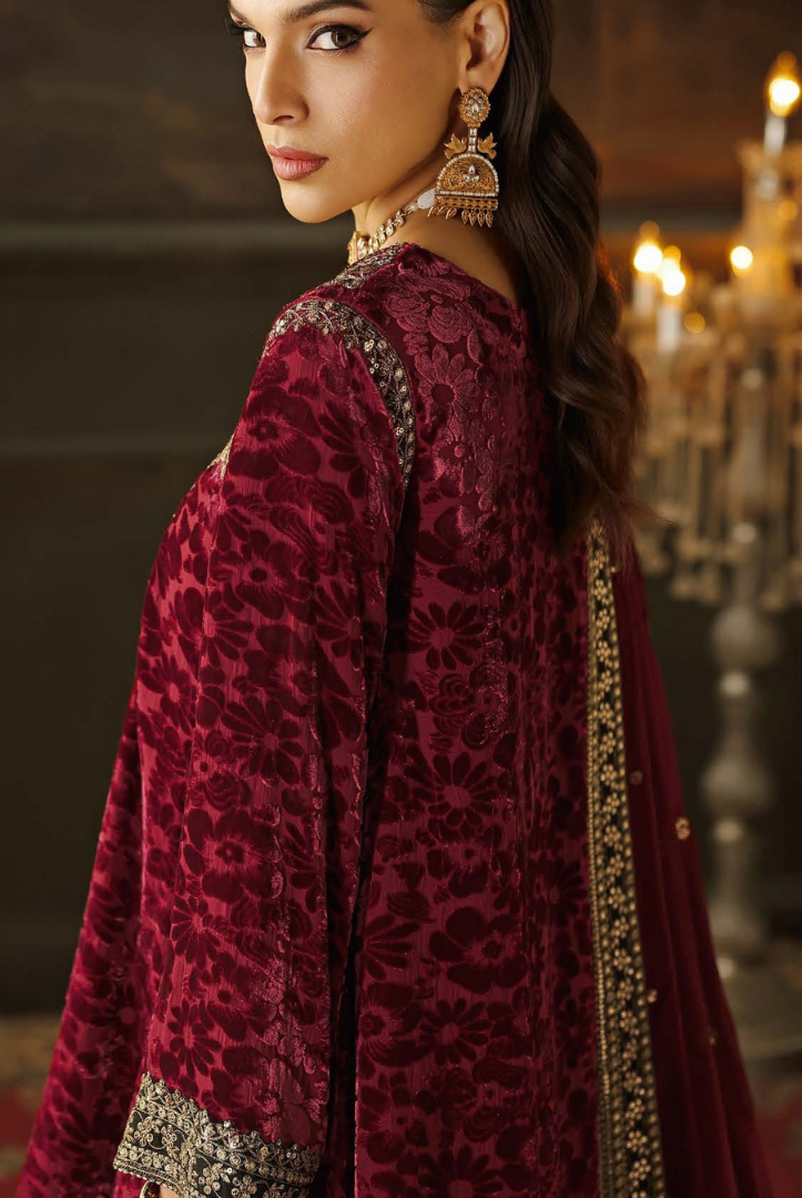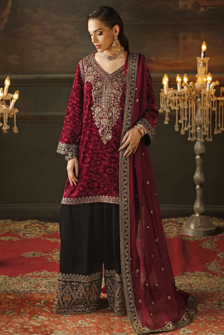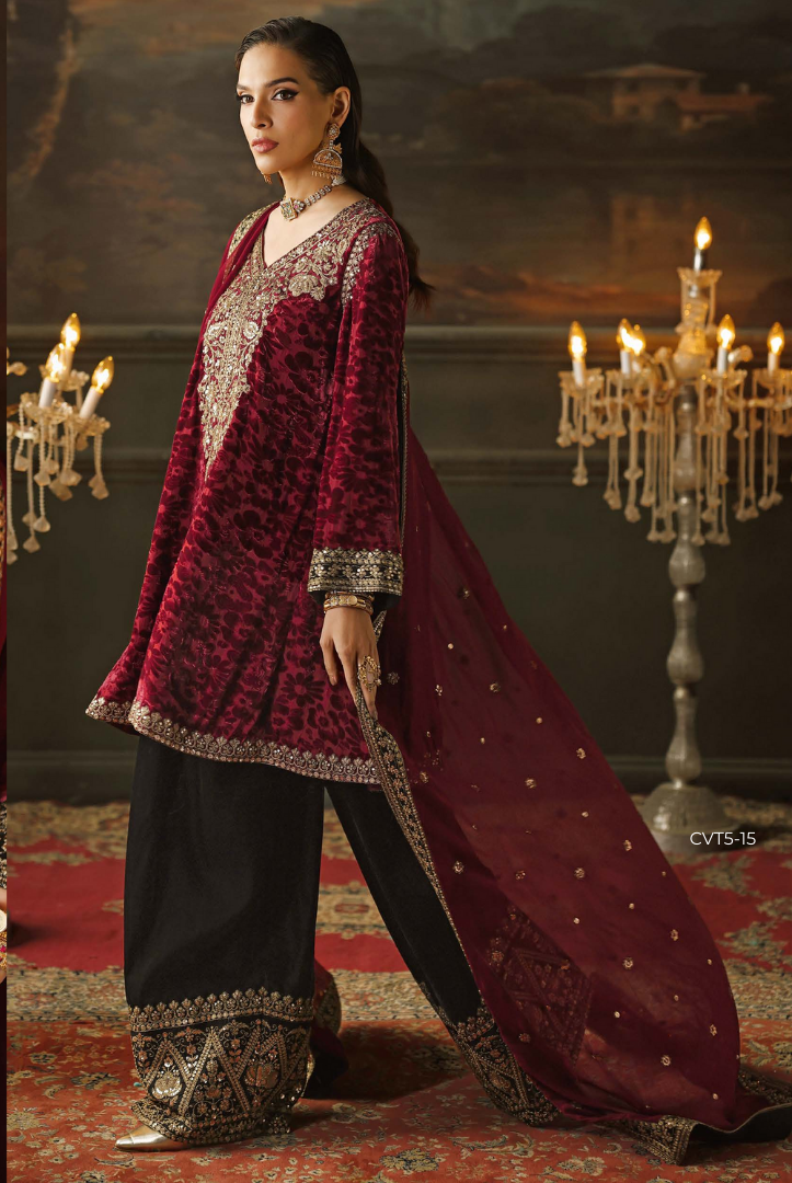 3 Piece Stitched Premium Embroidered Plachi Velvet Suit Signora by Charizma Volume II  | Winter Collection CVT5 comes with: