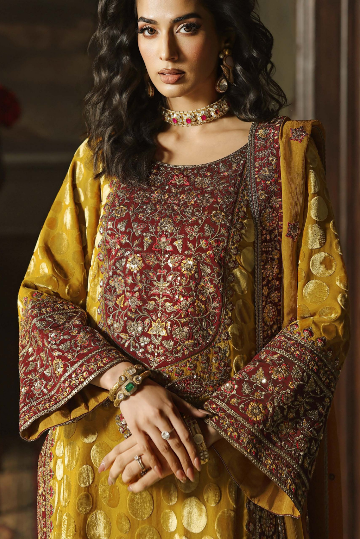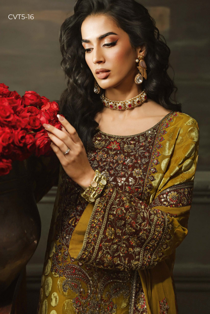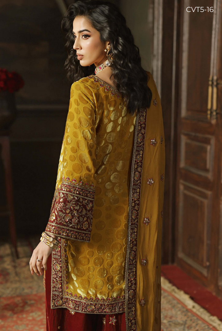 3 Piece Stitched Premium Embroidered Plachi Velvet Suit Signora by Charizma Volume II | Winter Collection CVT5 comes with: