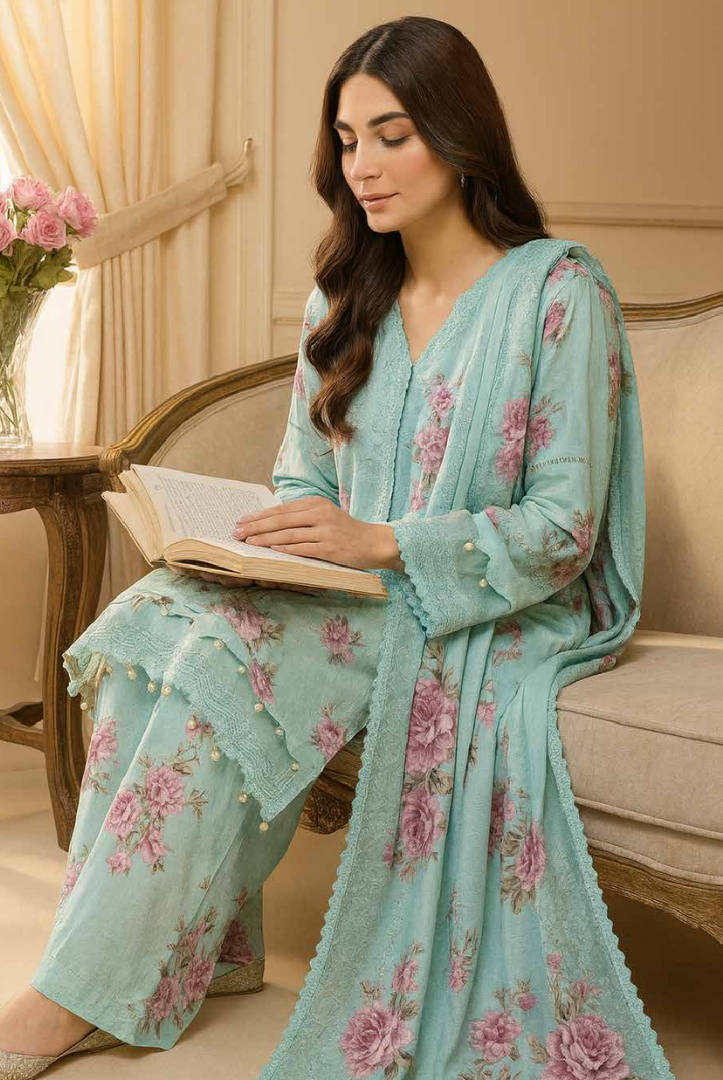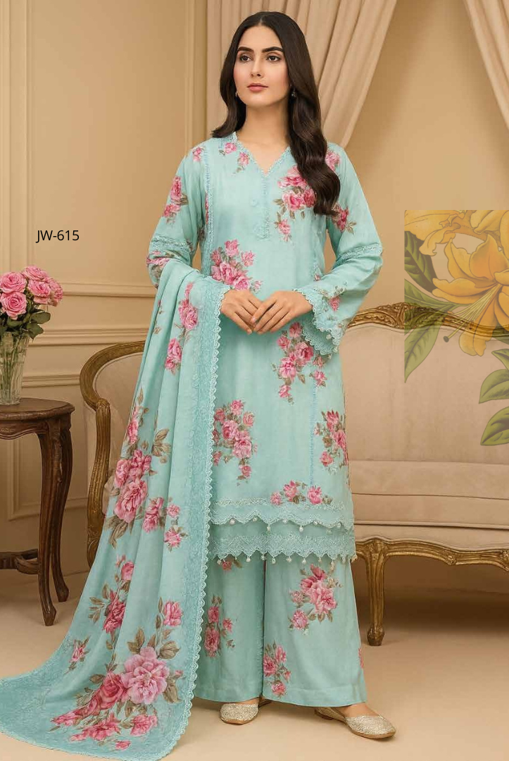 Upgrade your winter wardrobe with this elegant Johar Khaas 3-piece stitched suit. Featuring a beautifully printed shirt, matching printed trousers, and a coordinated printed shawl, this winter collection outfit blends comfort with timeless style. Perfect for casual wear and semi-formal winter gatherings.