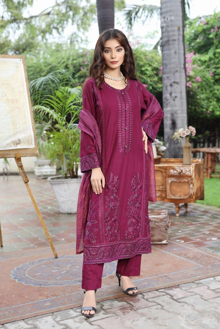 3 Piece Stitched Digital Printed Embroidered Lawn Suit From Zara ’25 Collection – ELEGANCE