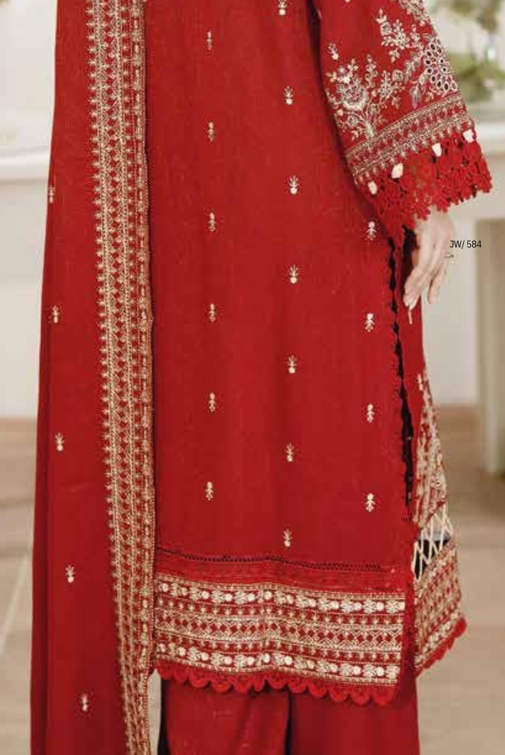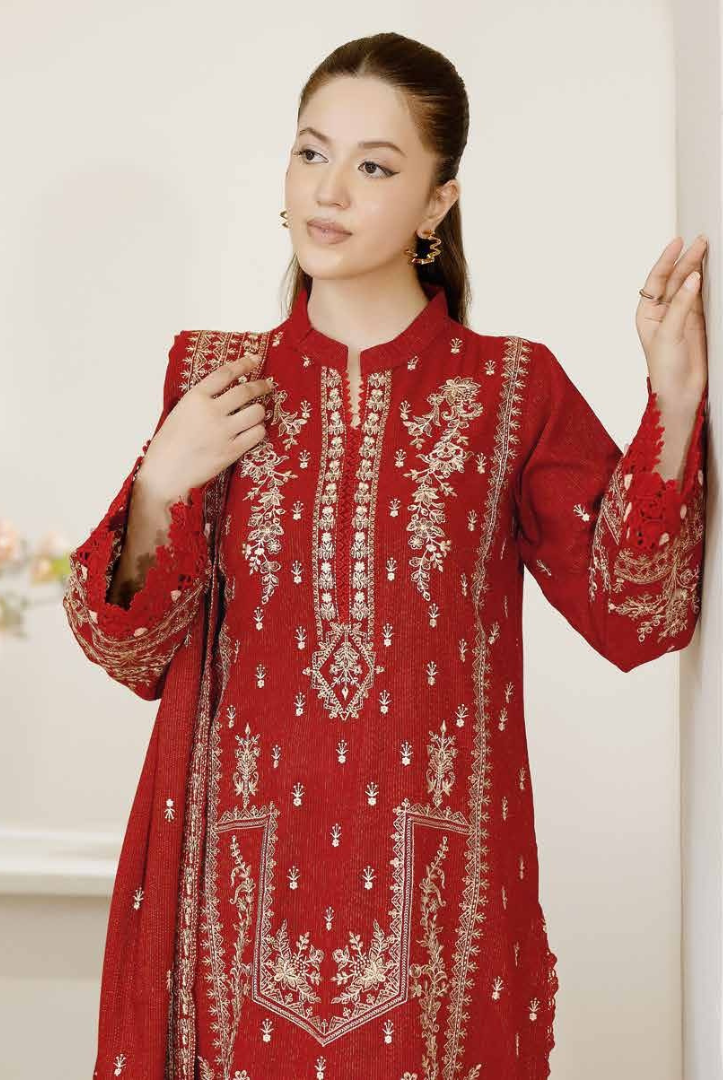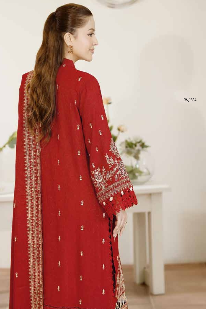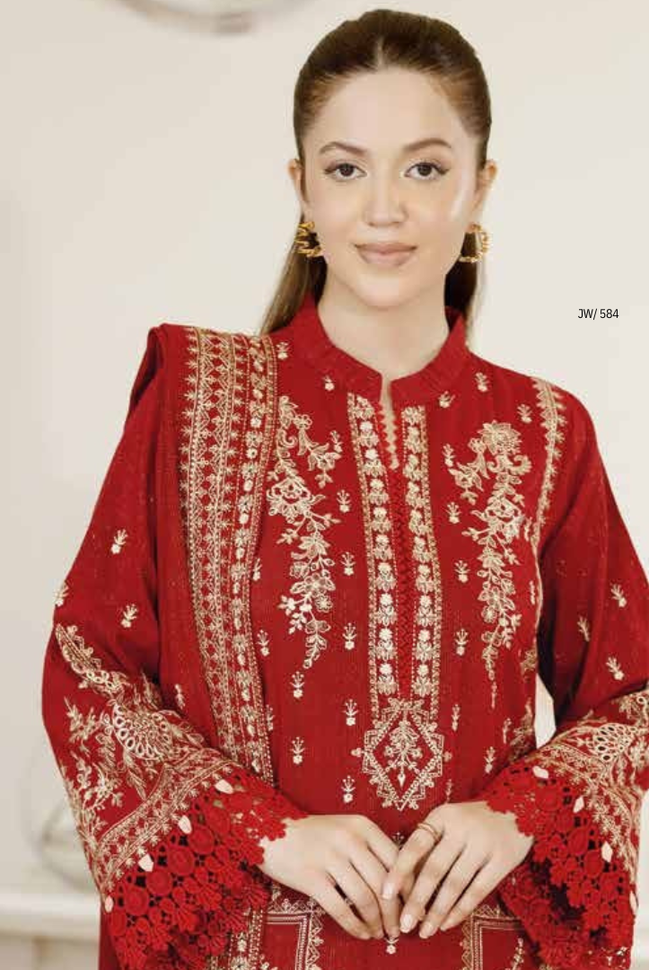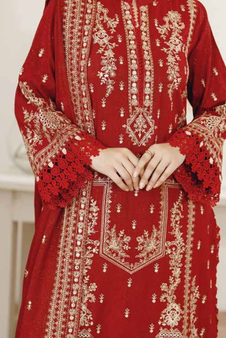 3 Piece Unstitched Embroidered fancy peach leather Reet by JOHRA Collection comes with: