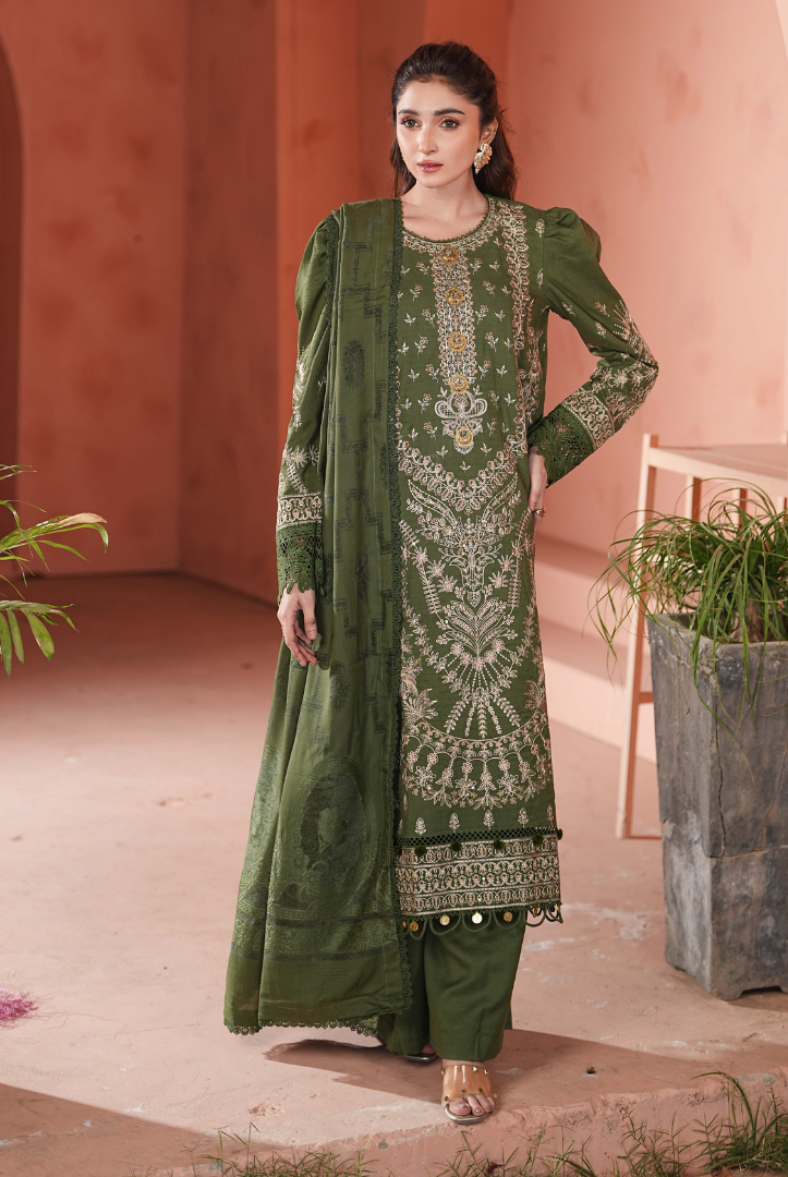 3 Piece Unstitched Embroidered jackquard velvet shawl Hoorish by Johra JW/ 594