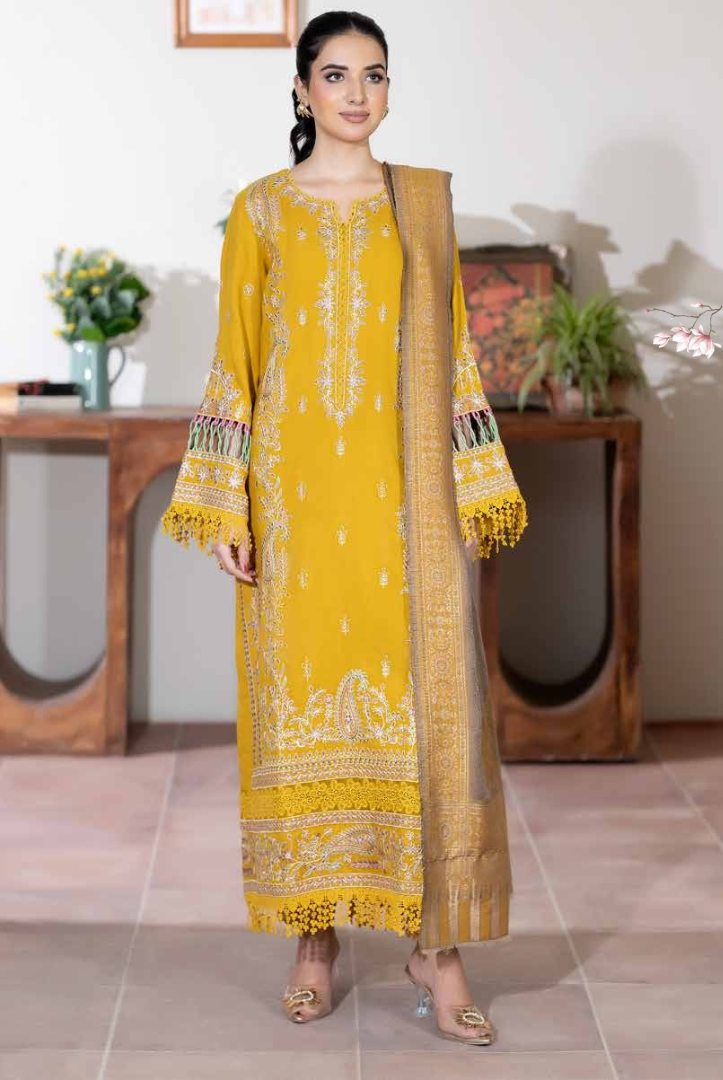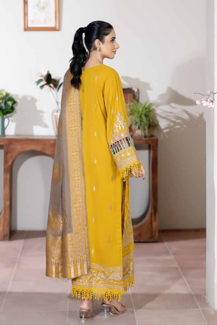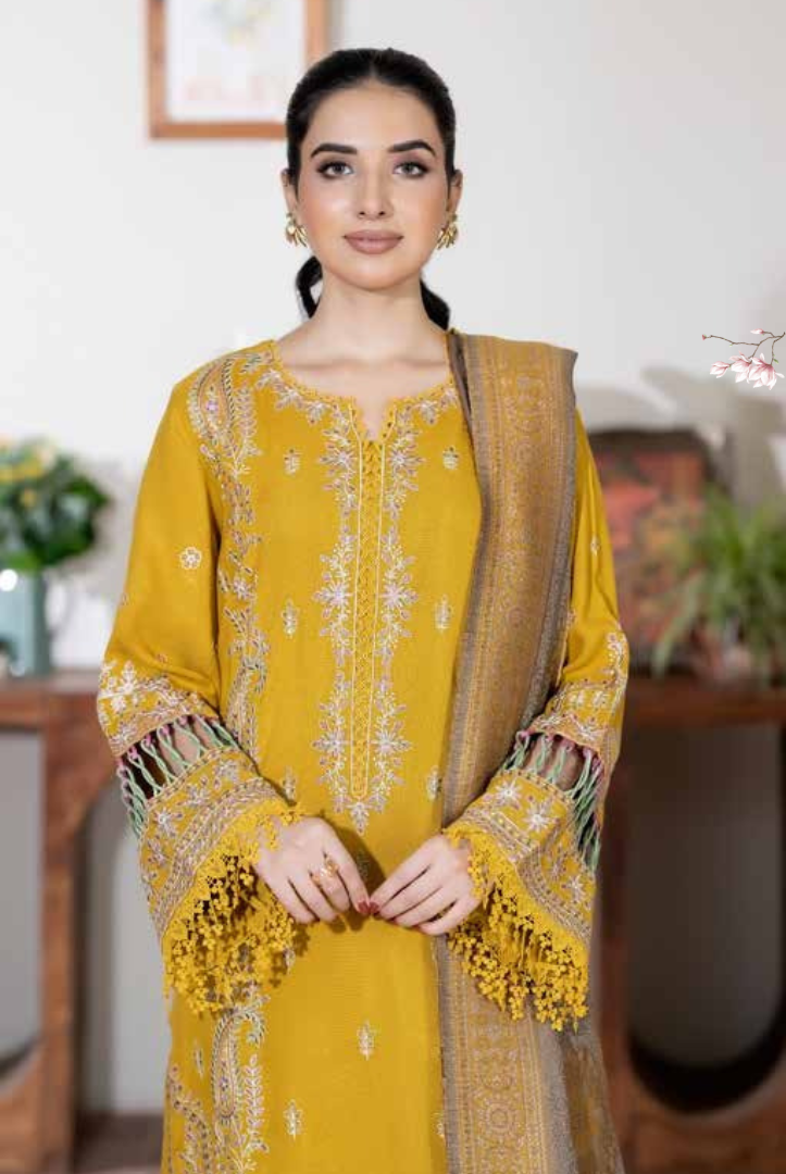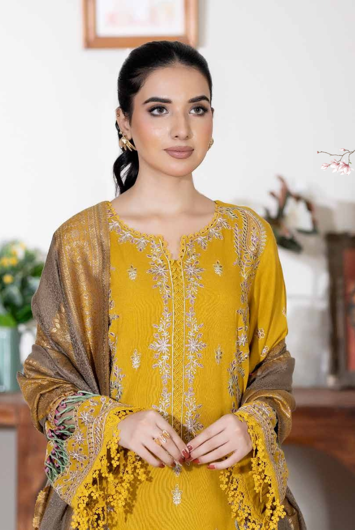 3 Piece Stitched Embroidered Fancy Peach Leather with Pure Wool Shawl Marsha by Johra Collection comes with: