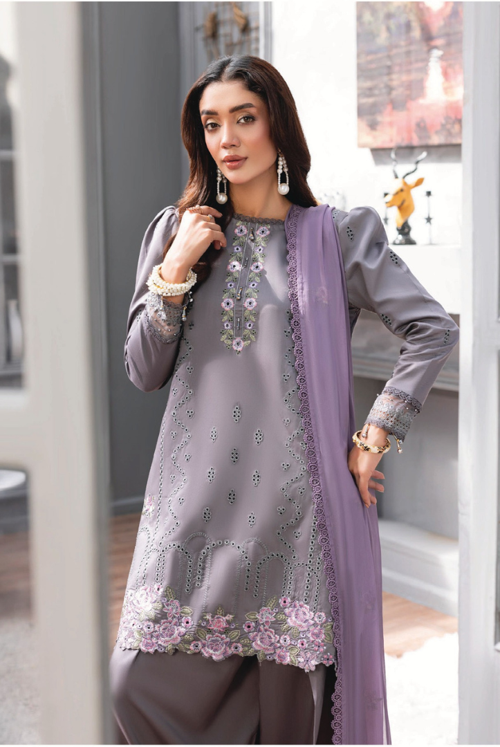 3 Piece Stitched Embroidered Viscose FAREEHA BY HUMDUM DEESIGN WINTER Collection comes with: