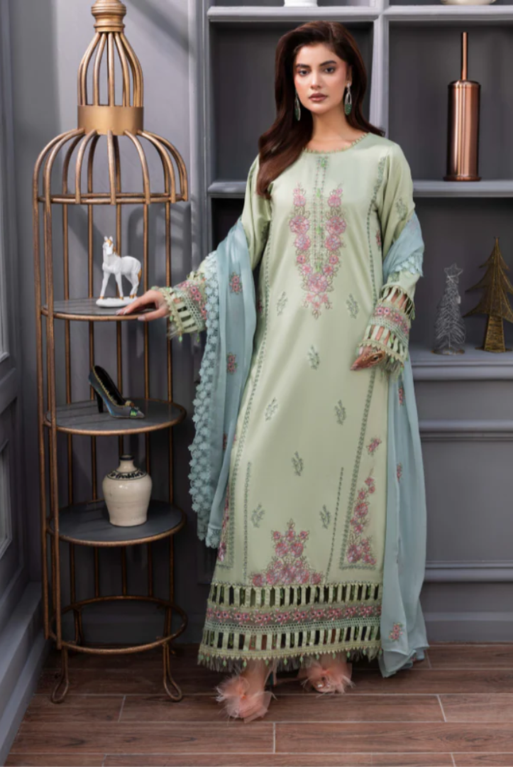 3 Piece Stitched Embroidered Viscose FAREEHA BY HUMDUM DEESIGN WINTER Collection comes with: