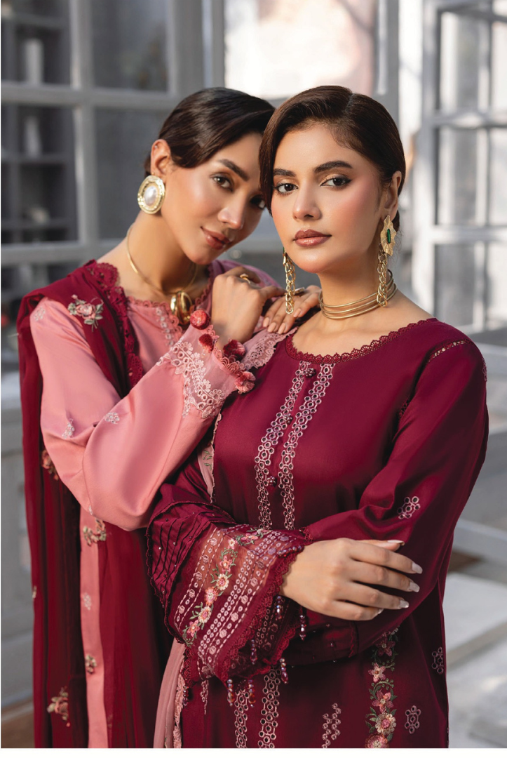 3 Piece Stitched Embroidered Viscose FAREEHA BY HUMDUM DEESIGN WINTER Collection comes with: