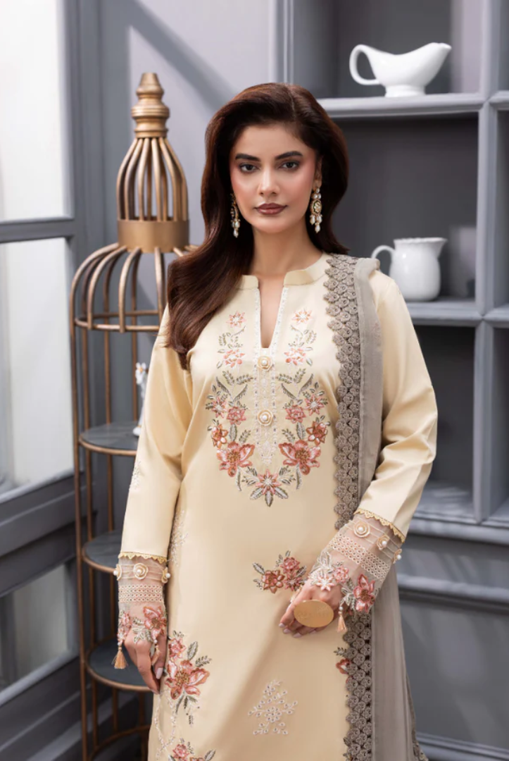 3 Piece Stitched Embroidered Viscose FAREEHA BY HUMDUM DEESIGN WINTER Collection comes with:
