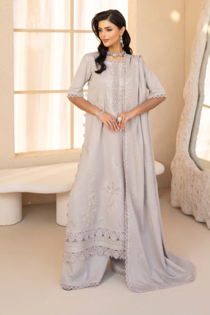 3 Piece Unstitched Embroidered WOOL CHICKENKARI Jugnu by Humdum (Inaly Cards) Collection comes with: